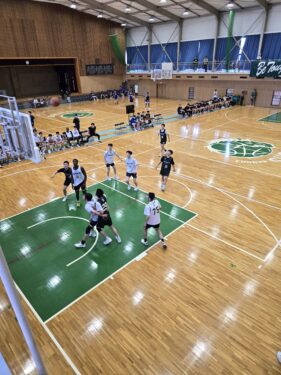 男子バスケットボール部の練習試合を見ました。5校が本校に集まって試合をしていました。