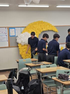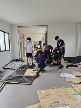 夏休み中や文化祭直前に校内でいろいろと作業している様子です。