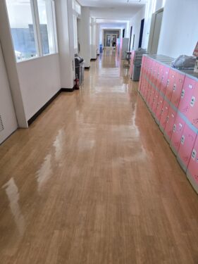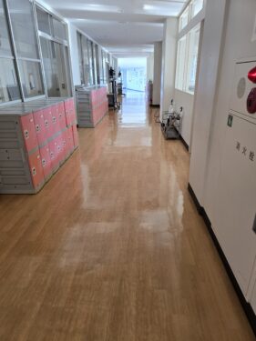 例年のことですが、校内のほぼ至るところを、2日間かけて業者の方にワックスがけして貰いました。