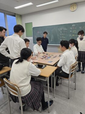 現在約10名の生徒が活動しているとのことでした。この日は「宝石の煌めき」と「カタン」というボードゲームを行っていました。