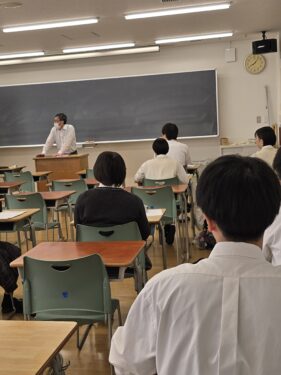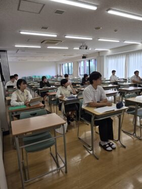 「小論文対策講座」は一つ一つの言葉が正確、的確で非常に分かりやすい講座でした。運動部系の3年生の顔が目立ちました。