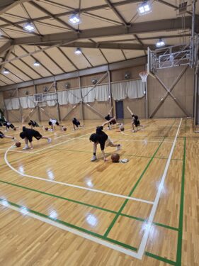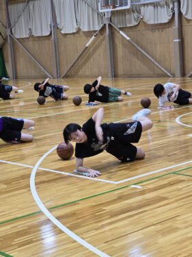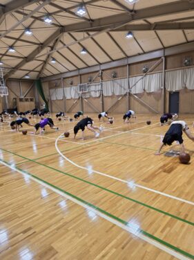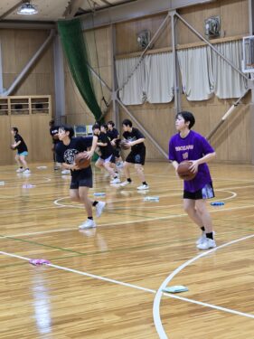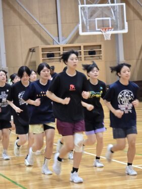 10月中旬の女子バスケットボール部の練習の様子です。いつも明るく元気によく練習しています。