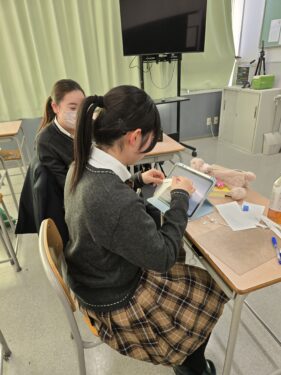 土曜日の午後、特進1年生のクラスに行くと何か作業をしていました。
