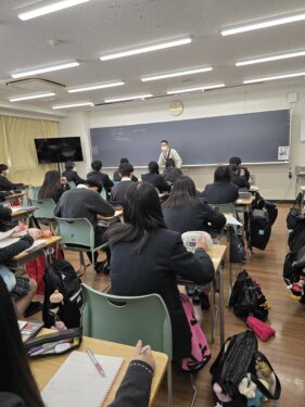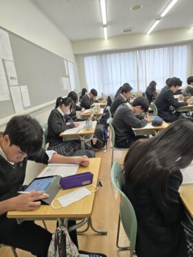 2年の政経は生徒がとても積極的で、先生の質問に対して、次から次へと手を挙げて、答えていました。
