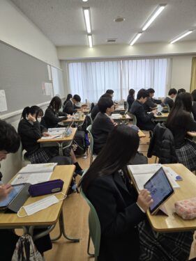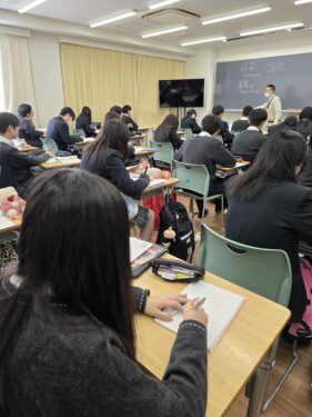 2年の政経は生徒がとても積極的で、先生の質問に対して、次から次へと手を挙げて、答えていました。