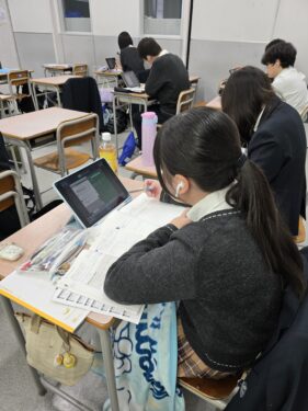 2年特進の数学は事前の準備に相当時間をかけていると思いました。それぞれの分野の動画を作っていて生徒がそれを見ながら学習し、よく分からないところを先生に質問していました。