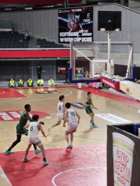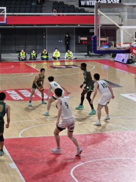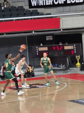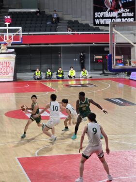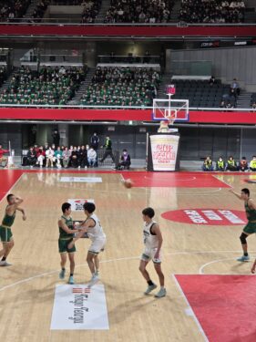 12/26金12時50分予定の試合は13時18分に始まりました。対戦相手は全国高校バスケを過去5回制し、今大会も優勝候補の筆頭格に位置している福岡第一高校でした。