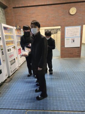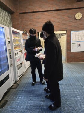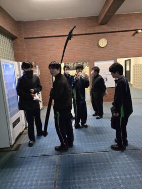 動画は12/15(月)遅い時間に自販機でパンを買っていた男子の集団がいたので、パンを買っている様子をアップさせてくれという話をしながら、何部なのかを聞くと、弓道部とのことでした。