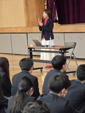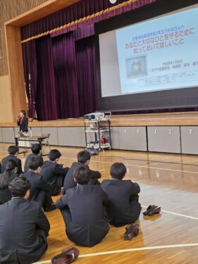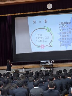 性教育講演会を体育館で行いました。普段性についてなかなか口にすることはありませんが、ある意味最も大切なことだと思います。