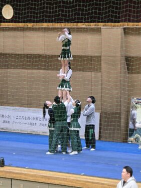 チアリーディング部は、1/24(土)25(日)が、国立代々木競技場第一体育館で、全日本高等学校全日本中学校チアリーディング選手権大会でしたので、その試合直前の午前の練習の様子です。