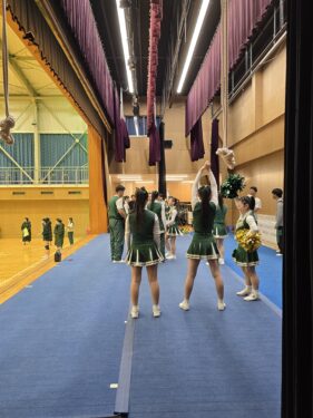 チアリーディング部は、1/24(土)25(日)が、国立代々木競技場第一体育館で、全日本高等学校全日本中学校チアリーディング選手権大会でしたので、その試合直前の午前の練習の様子です。