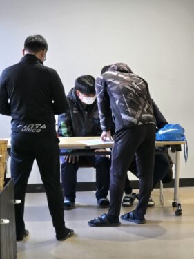 最後に女子バスケットボール部の子が不思議な格好でずっと立っていたので、聞くと、テーピングをして貰っているとのこと、御協力願いました。