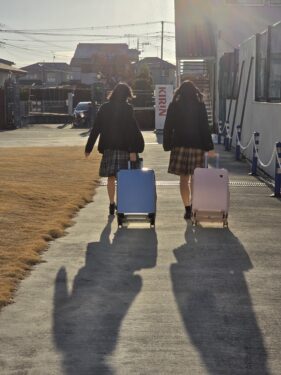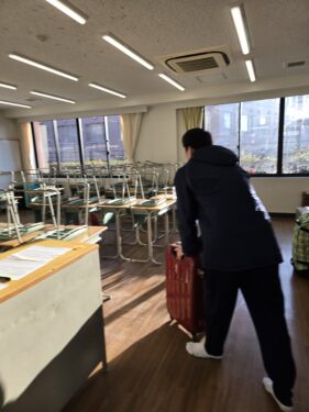 本日と明日、修学旅行の国内コースの荷物の搬出を行なっています。