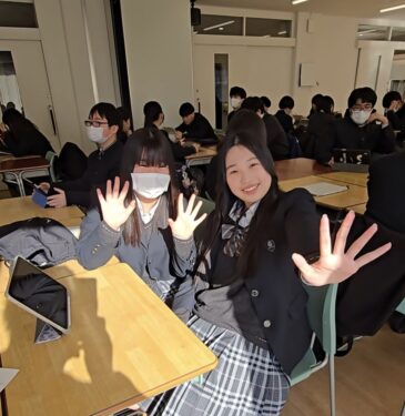 深谷アンバサダープロジェクトの一貫として、班ごとに取材に出掛けようとする生徒に下足室の前で会いました。