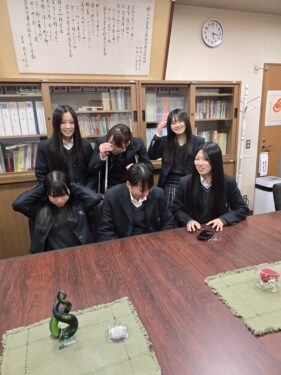 校長室の前で賑やかな声が聞こえたので見てみると、女子サッカー部の生徒が3年生を送り出すために何かを話し合っていました。