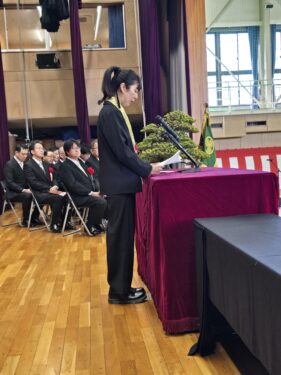 答辞、送辞素晴らしかった。特に答辞は「文学」でした。情景が目に浮かびました。感動しました。