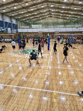 男子バレーボール部は、明日が中学生の大会を本校で予定しているので準備もしていました。