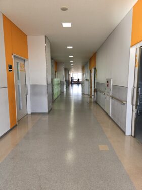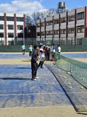 体育館では男子バレーボール部、男子バスケットボール部、女子バスケットボール部が大きな声を出しながら気合いの入った練習や練習試合を行っていました。中庭ではテニス部が練習していました。