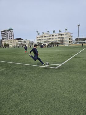 サッカー部の練習の様子です。本校で一番部員数の多い部活動です。