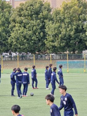 サッカー部の練習の様子です。本校で一番部員数の多い部活動です。