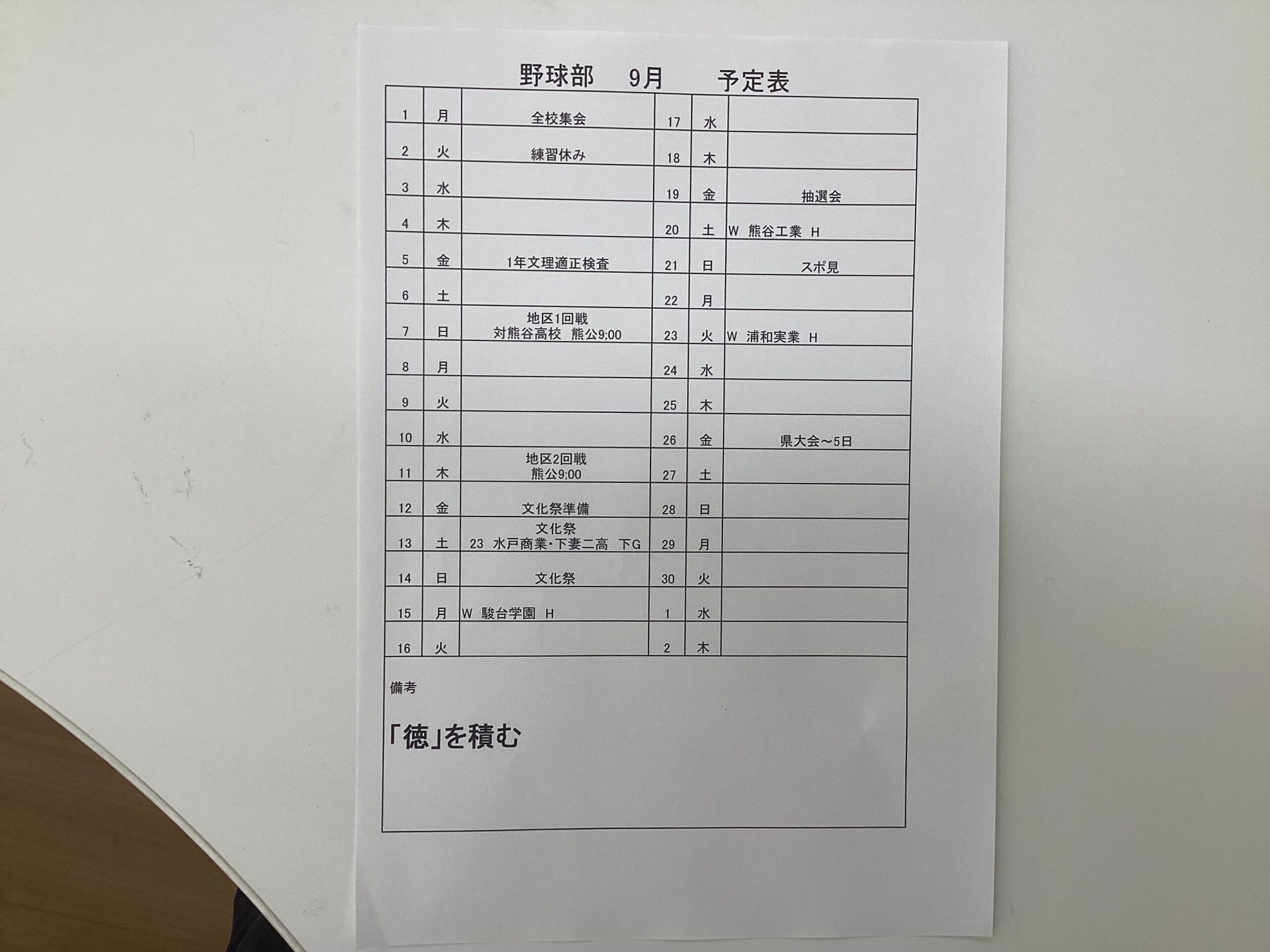 9月の予定と秋季大会の組み合わせのお知らせです!